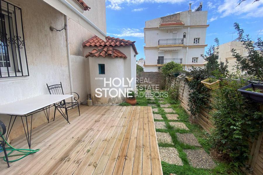 ΓΛΥΦΑΔΑ (Αιξωνή), οροφοδιαμέρισμα 141τμ, υπερυψωμένο ισόγειο, σε ήσυχη γειτονιά, κοντά σε αγορά και ΜΜΜ, διαθέτει μεγάλο φωτεινό σαλόνι με τζάκι, κλειστή κουζίνα με άμεση πρόσβαση σε κήπο, 2 ευρύχωρα υπνοδωμάτια, 2 μπάνια και μεγάλες βεράντες. Στο υπόγειο υπάρχει ένα φωτεινό δωμάτιο 25τμ, που μπορεί να χρησιμοποιηθεί σαν αποθήκη η σαν guest room και μία θέση στάθμευσης. Τιμή πώλησης 570.000 ευρώ.