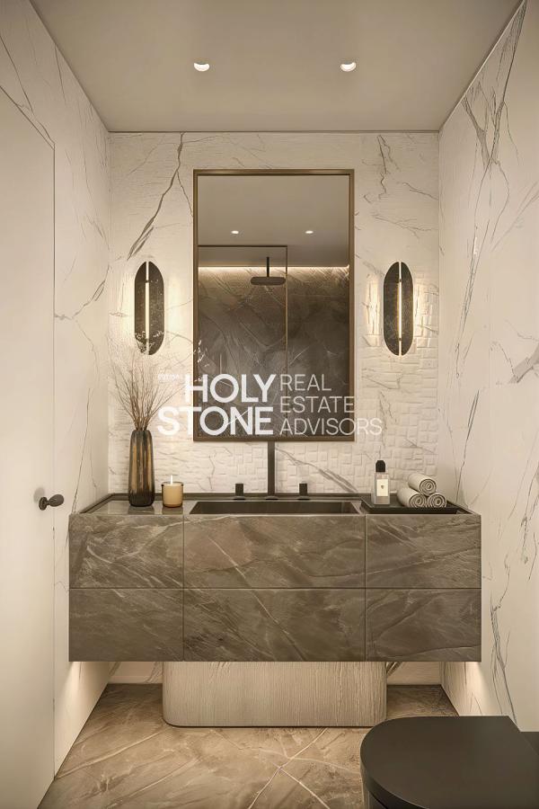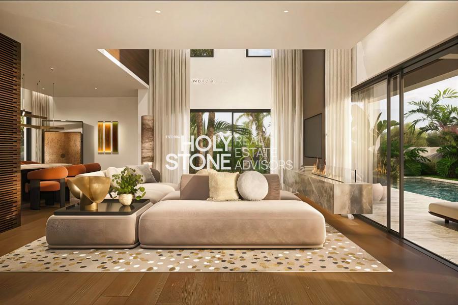 Στο ισόγειο, επιφάνειας 96 τ.μ., διαμορφώνεται ένας άνετος ενιαίος χώρος καθιστικού, τραπεζαρίας και μοντέρνας κουζίνας, WC επισκεπτών, καθώς και ένα ευρύχωρο master υπνοδωμάτιο με ιδιωτικό μπάνιο. Μέσω εσωτερικής σκάλας, ο πρώτος όροφος, 79 τ.μ., φιλοξενεί δύο ακόμη master υπνοδωμάτια, το καθένα με το δικό του en-suite μπάνιο, διαμορφώνοντας ένα περιβάλλον απόλυτης άνεσης και ιδιωτικότητας.