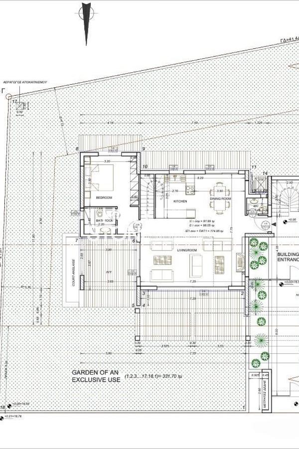 Η κατοικία ανοίγει σε έναν εντυπωσιακό κήπο αποκλειστικής χρήσης 332 τ.μ., ο οποίος περιλαμβάνει πλακόστρωτη βεράντα, χώρο πρασίνου και δυνατότητα κατασκευής ιδιωτικής πισίνας επιφάνειας περίπου 25 τ.μ., δημιουργώντας ιδανικές συνθήκες για χαλάρωση και φιλοξενία καθ’ όλη τη διάρκεια του χρόνου.