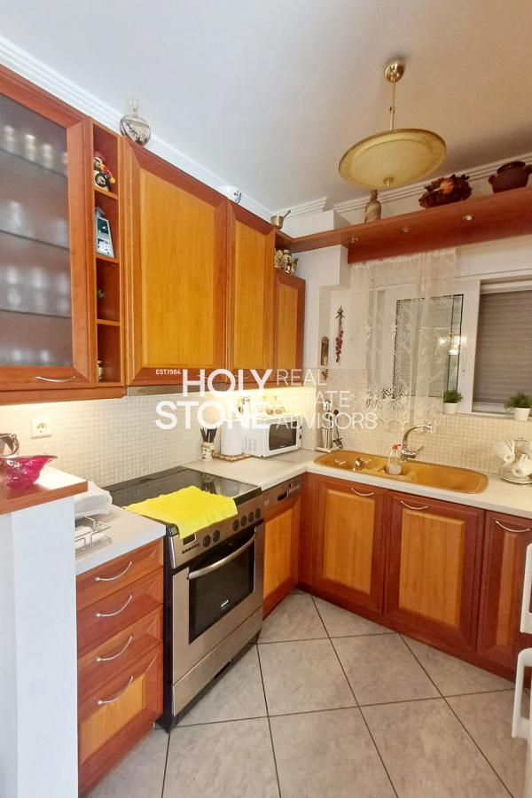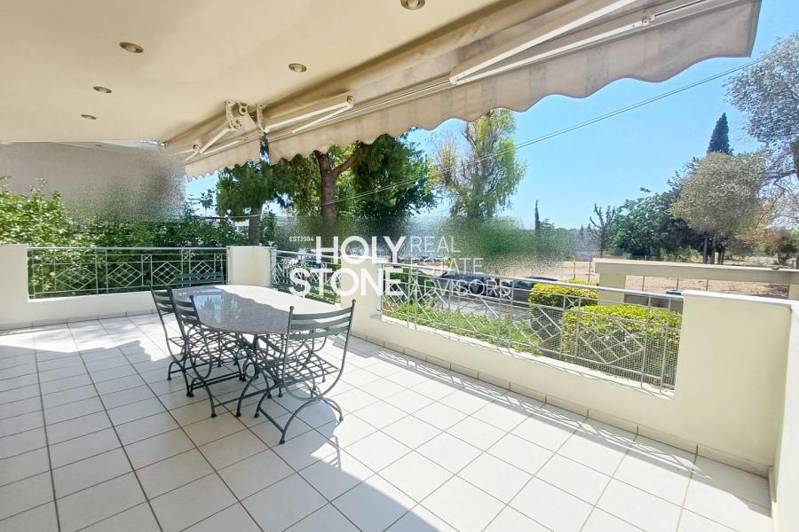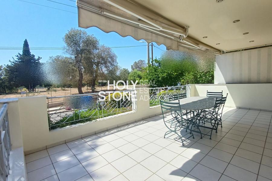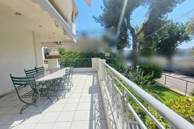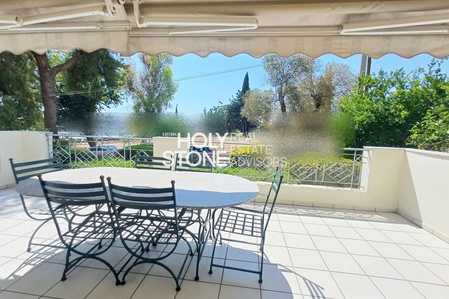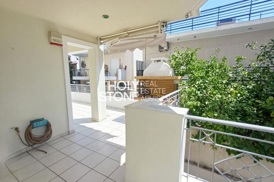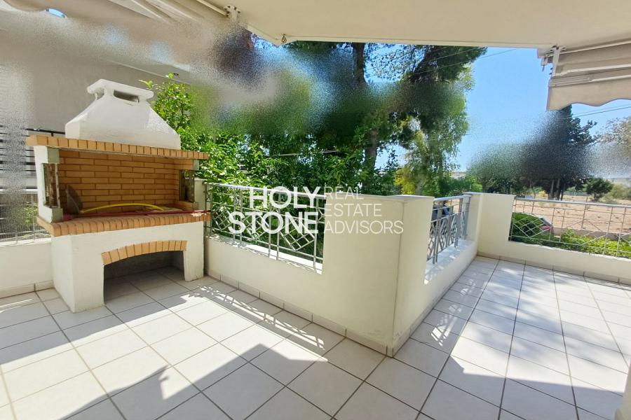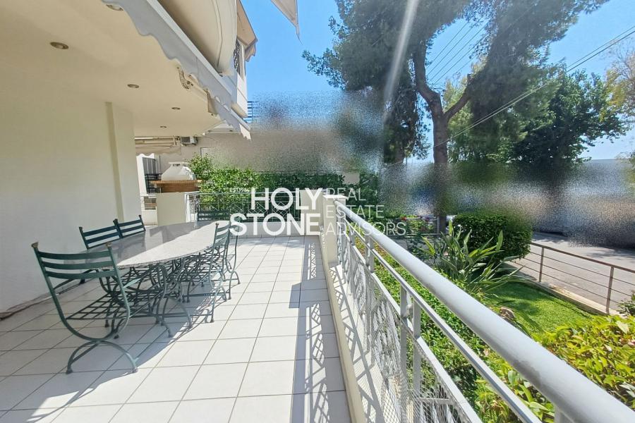 ΑΛΙΜΟΣ (Τράχωνες), Αξιόλογο υπερηψωμένο ισόγειο διαμέρισμα, 77 τ.μ., με ωραία, ευρύχωρη βεράντα, μόλις 500 μέτρα απο το μετρό του Αλίμου, διατιθεται προς πώληση. Το ακίνητο αποτελείται από open-plan κουζίνα που ενώνεται με το καθιστικό και την τραπεζαρία, ενώ το σαλόνι διαθέτει τζάκι και προσφέρει άμεση πρόσβαση σε μεγάλη βεράντα, η οποία είναι εξοπλισμένη με εντοιχισμένο BBQ, ιδανική για χαλάρωση και φιλοξενία. Διαθέτει 2 υπνοδωμάτια, 1 μπάνιο κι' ένα επιπλέον WC. Το διαμέρισμα συνοδεύεται από μία αποθήκη 12 τ.μ. καθώς και 1 θέση στάθμευσης