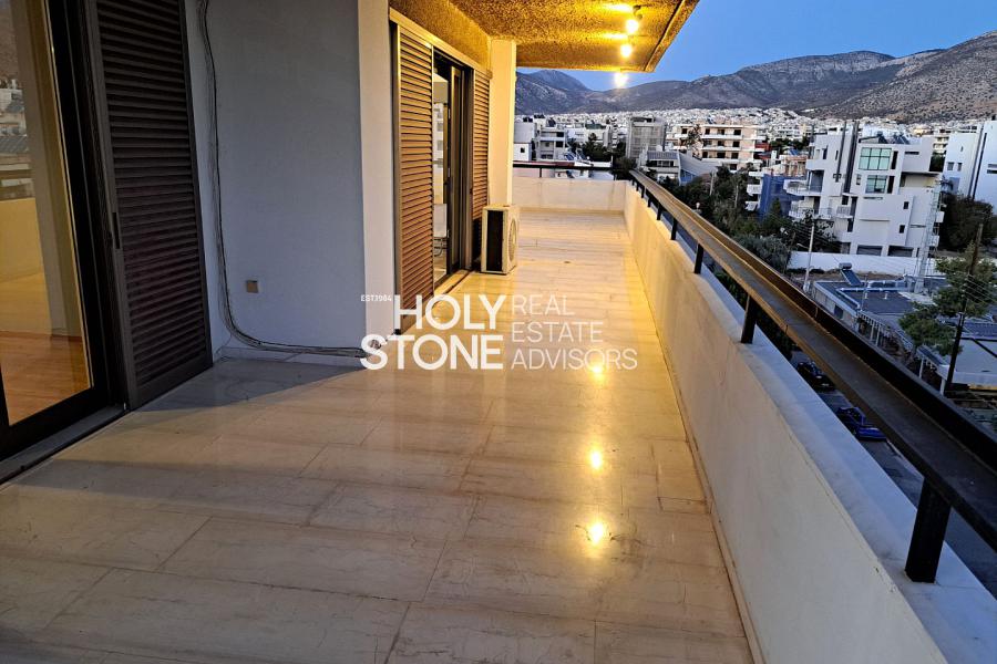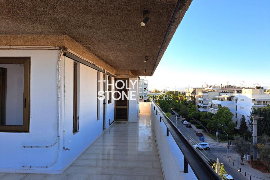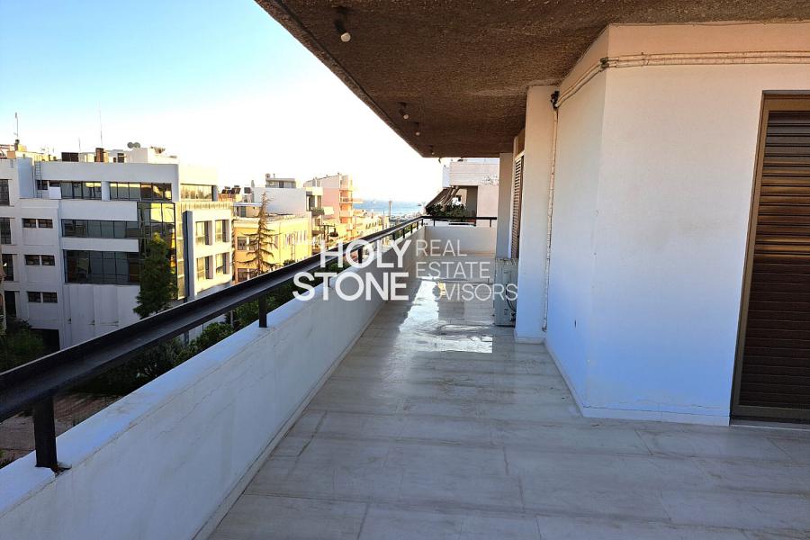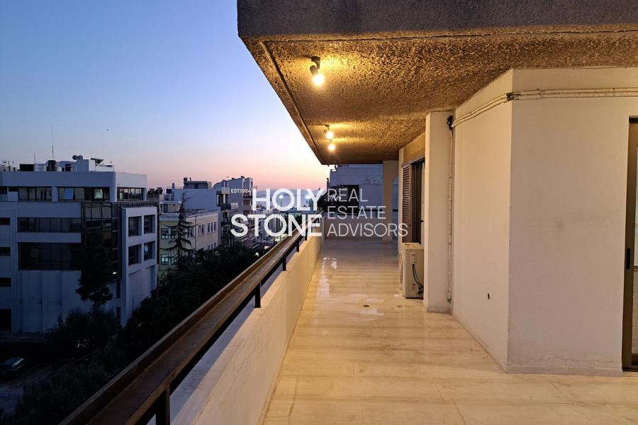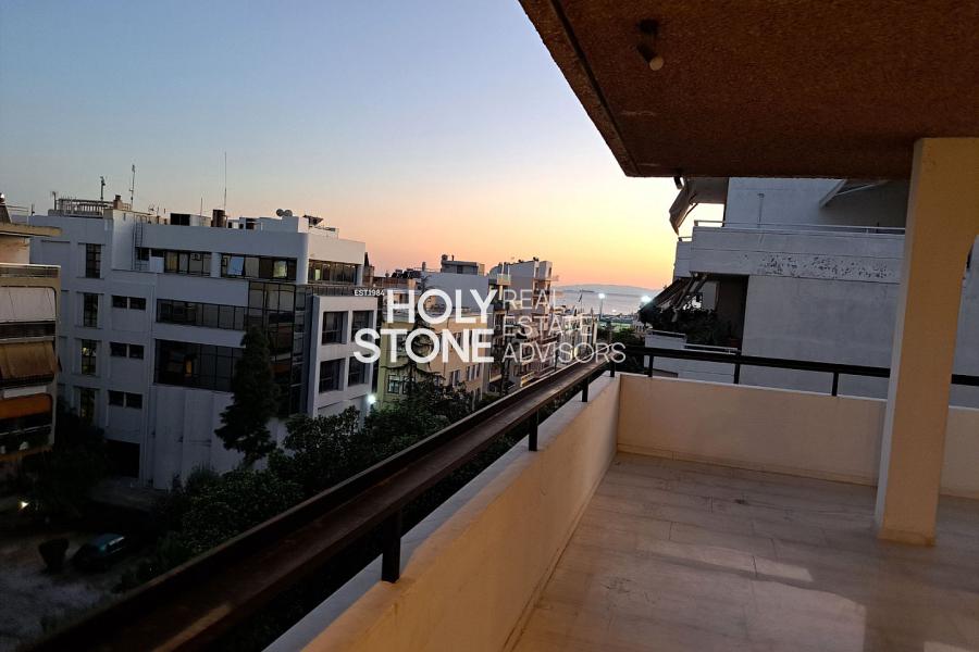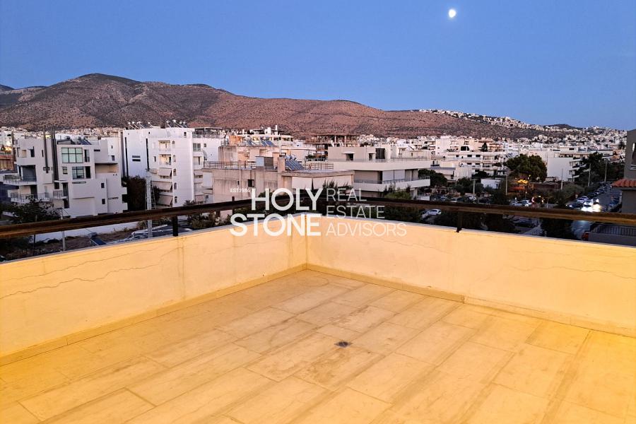 ΓΛΥΦΑΔΑ (Κέντρο), Μοναδικής τοποθεσίας ρετιρέ – Ανακαινισμένο οροφοδιαμέρισμα 168 τ.μ., στον 5ο όροφο, με ανεμπόδιστη θέα προς το βουνό και μερική θέα στη θάλασσα. Βρίσκεται μόλις λίγα λεπτά από την κεντρική αγορά, εστιατόρια, καφετέριες και την παραλία.
