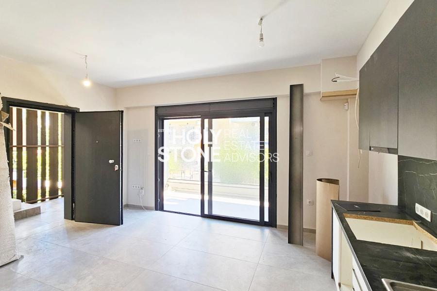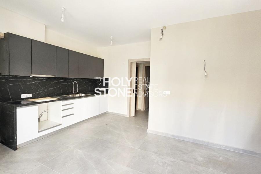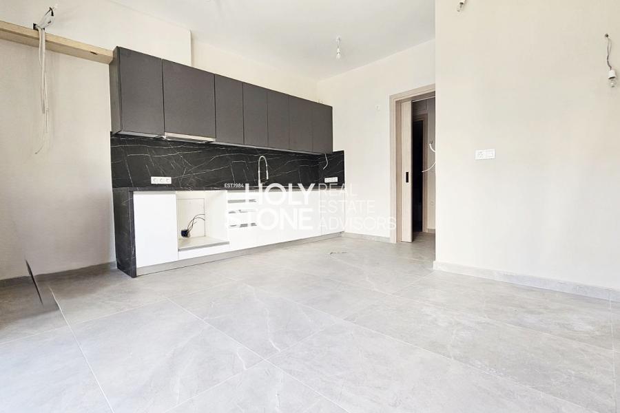 Το διαμέρισμα αποτελείται από ενιαίο χώρο σαλονιού με κουζίνα (open-plan), δύο υπνοδωμάτια, ένα μπάνιο και διαθέτει πρόσβαση σε άνετο μπαλκόνι. Η κατασκευή του είναι σχεδόν ολοκληρωμένη και απαιτούνται μόνο ελάχιστες παρεμβάσεις για την πλήρη αποπεράτωσή του, δίνοντας τη δυνατότητα στον νέο ιδιοκτήτη να το διαμορφώσει σύμφωνα με τις προτιμήσεις του.