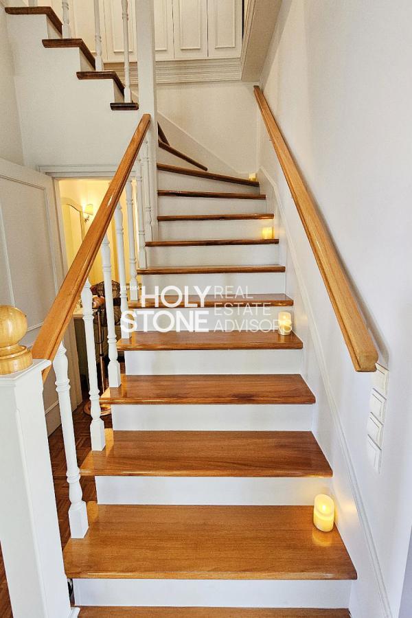 Η κατοικία εκτείνεται σε τρία επίπεδα: υπόγειο, ισόγειο και 1ο όροφο, εντός οικοπέδου 350 τ.μ. Είναι εξαιρετικά φωτεινή και η αρχιτεκτονική της αποπνέει μια αίσθηση βρετανικής πολυτέλειας και κομψότητας. Αποτελείται από μεζονέτα ισογείου-1ου 180 τ.μ. καθώς και ανεξάρτητο διαμέρισμα 90 τ.μ. στο επίπεδο του κήπου-πισίνας.