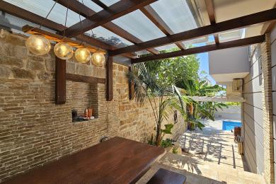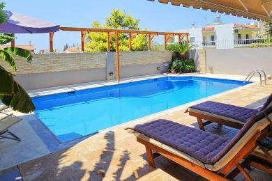 Η ιδιοκτησία διαθέτει επιπλέον διευκολύνσεις, όπως αυτόνομη θέρμανση με πετρέλαιο, κλιματισμό, ηλιακό θερμοσίφωνα, καθώς και δύο τζάκια που προσθέτουν ζεστασιά και ατμόσφαιρα στους εσωτερικούς χώρους. Ένα μεγάλο πλεονέκτημα είναι οι εξωτερικοί χώροι, που περιλαμβάνουν έναν όμορφο κήπο με πισίνα, μπάρμπεκιου και άνετες βεράντες, ιδανικές για στιγμές χαλάρωσης και διασκέδασης.