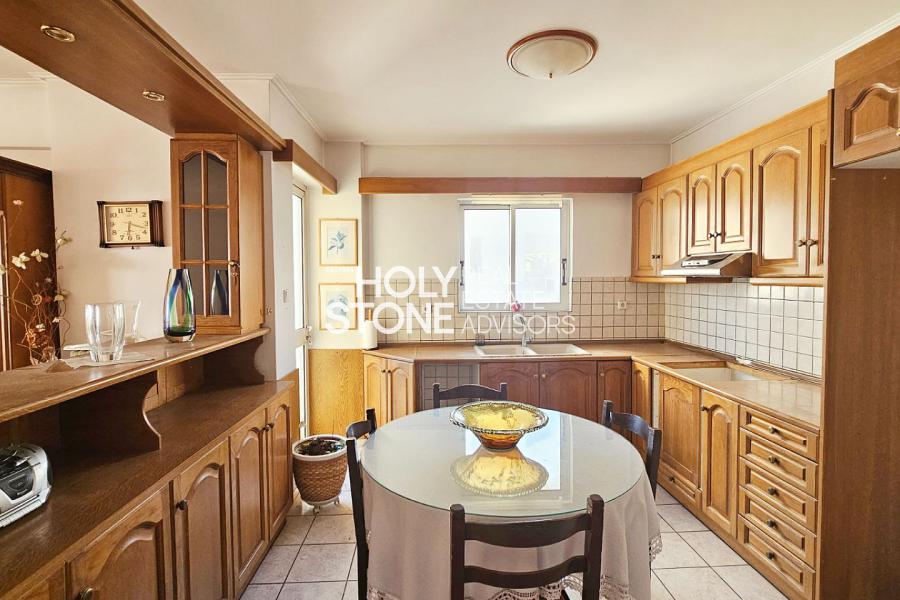ΗΛΙΟΥΠΟΛΗ (Κάτω), Πρόκειται για ένα αξιόλογο διαμέρισμα 96 τ.μ., στον 2ο όροφο μιας καλοδιατηρημένης πολυκατοικίας, το οποίο, χάρη στην υπερυψωμένη θέση του, προσφέρει την αίσθηση ότι βρίσκεται στον 4ο όροφο και χαρίζει όμορφη θέα προς τη θάλασσα. Το διαμέρισμα βρίσκεται σε ήσυχη και προνομιακή τοποθεσία, σε πολύ μικρή απόσταση από το κέντρο της πόλης, συνδυάζοντας έτσι την ηρεμία με την άμεση πρόσβαση σε υπηρεσίες και καταστήματα.