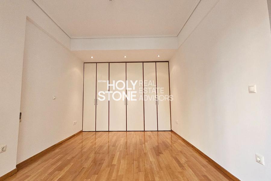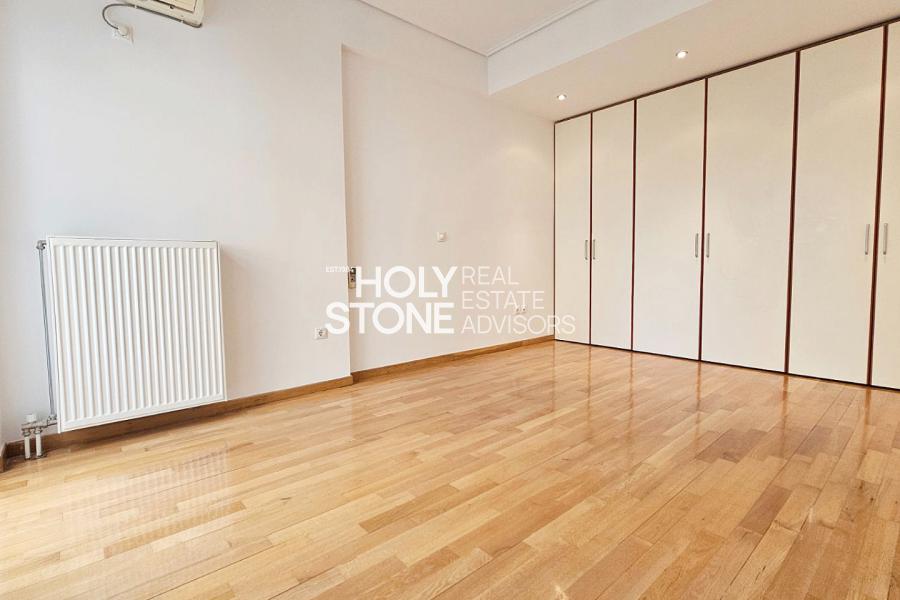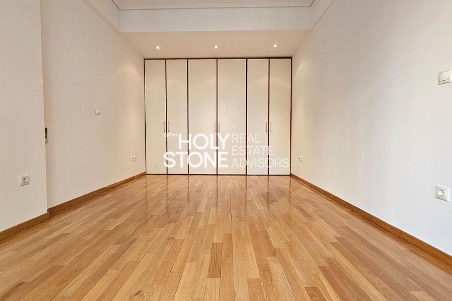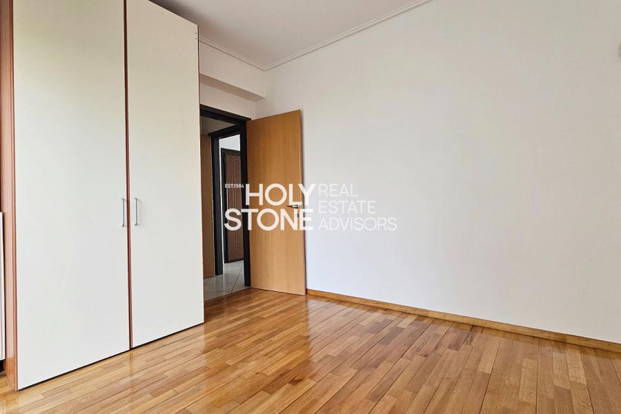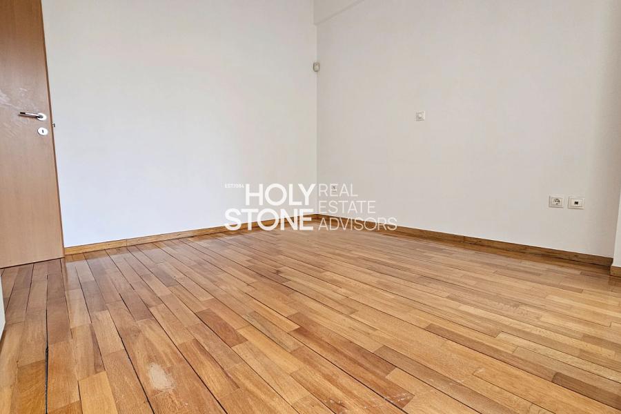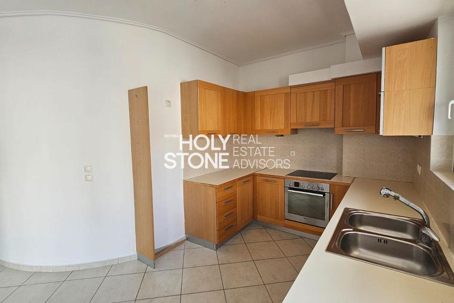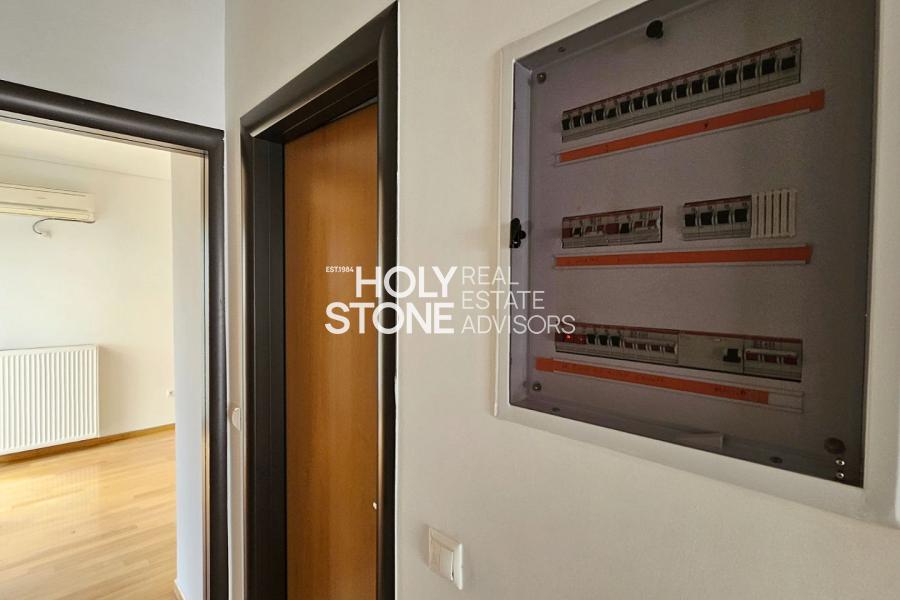 Το διαμέρισμα διαθέτει ενιαία κουζίνα με εντοιχισμένες ηλεκτρικές συσκευές, σαλόνι με τζάκι και έξοδο σε ευρύχωρο μπαλκόνι. Περιλαμβάνει επίσης δύο άνετα υπνοδωμάτια με ξύλινα δάπεδα, ένα μπάνιο, αποθήκη 20 τ.μ. καθώς και μία θέση στάθμευσης στην πιλοτή.