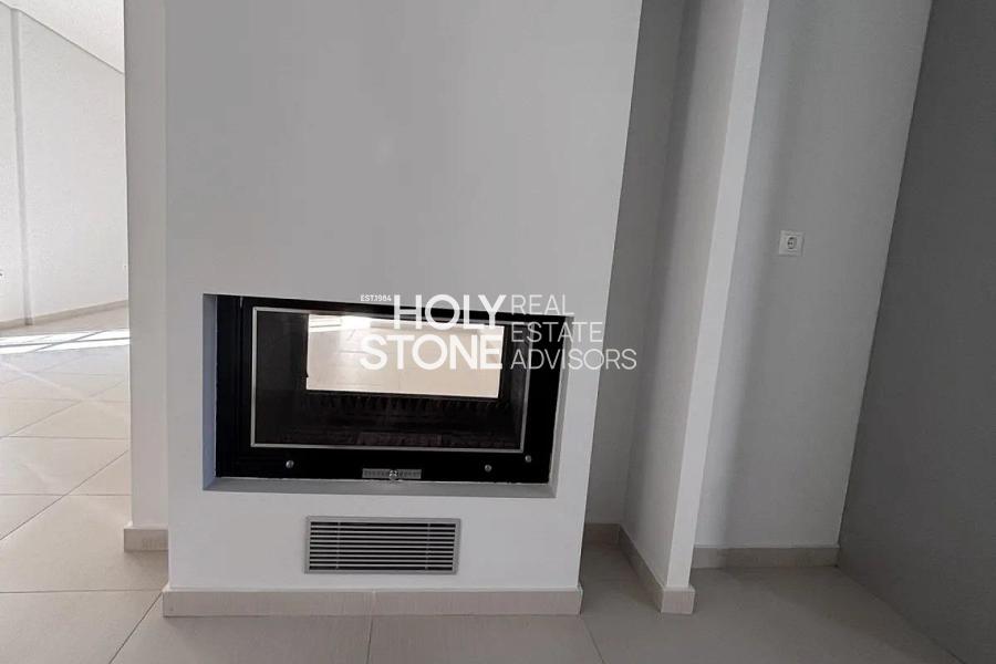 Διαθέτει ευρύχωρο καθιστικό με ενεργειακό τζάκι που δημιουργεί μια ζεστή και φιλόξενη ατμόσφαιρα, καθώς και σύγχρονη ανοιχτή κουζίνα με εργονομικό σχεδιασμό και υλικά υψηλής αισθητικής.
