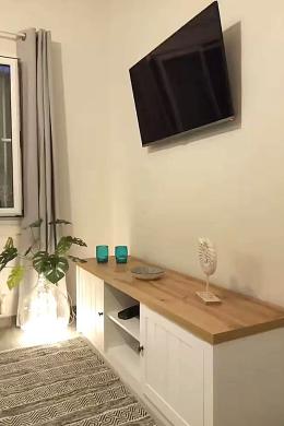 Η κατοικία αποτελείται από άνετο σαλόνι με σύγχρονη διακόσμηση, πλήρως εξοπλισμένη κουζίνα, ευχάριστο υπνοδωμάτιο με άμεση πρόσβαση στον κήπο και μπάνιο με ντουζιέρα. Το διαμέρισμα διατίθεται επιπλωμένο και έτοιμο προς κατοίκηση.