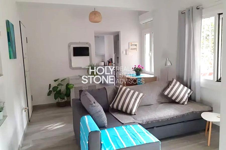 ΓΛΥΦΑΔΑ (Παραλία), Σε εξαιρετική τοποθεσία, ακριβώς απέναντι από μια όμορφη αμμώδη παραλία, πωλείται πλήρως ανακαινισμένο και επιπλωμένο διαμέρισμα 43 τ.μ., ιδανικό για μόνιμη κατοικία ή εξοχικό. Το διαμέρισμα βρίσκεται στον πρώτο όροφο καλαίσθητης πολυκατοικίας, με πρόσβαση μέσω σκάλας ή ασανσέρ. Τοποθετημένο στο πίσω μέρος του κτιρίου, προσφέρει απόλυτη ησυχία και ιδιωτικότητα. Από τις μπαλκονόπορτες του υπνοδωματίου υπάρχει άμεση έξοδος σε έναν όμορφο ιδιωτικό κήπο και βεράντα, καθώς στο πίσω μέρος το επίπεδο αντιστοιχεί πρακτικά στο ισόγειο. Ο κήπος είναι αποκλειστικής χρήσης, ιδανικός για στιγμές χαλάρωσης.