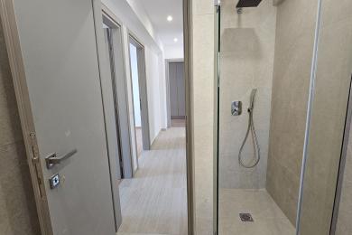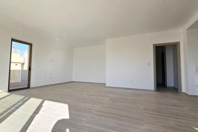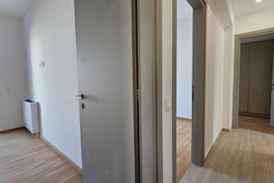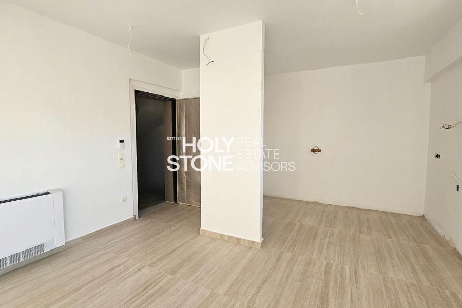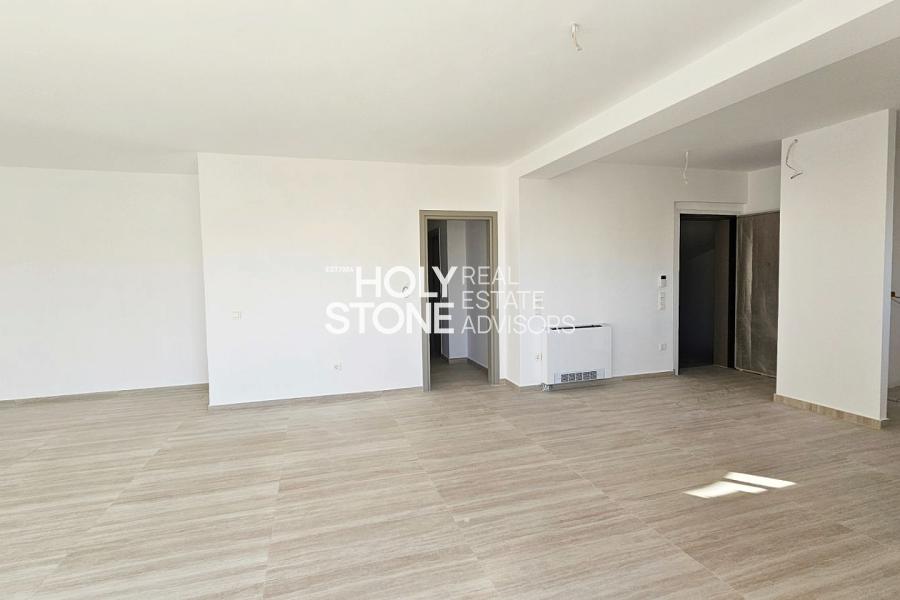 Ο χώρος υποδοχής περιλαμβάνει ανοιχτό σαλόνι και τραπεζαρία, τα οποία επικοινωνούν αρμονικά με την κουζίνα, η οποία δεν έχει τοποθετηθεί και μπορεί να σχεδιαστεί σύμφωνα με τις ανάγκες του νέου ιδιοκτήτη. Από εδώ υπάρχει πρόσβαση σε ένα ευρύχωρο μπαλκόνι που προσφέρει όμορφη θέα προς το αστικό τοπίο και τη θάλασσα, ιδανικό για στιγμές χαλάρωσης ή φιλοξενία.