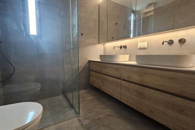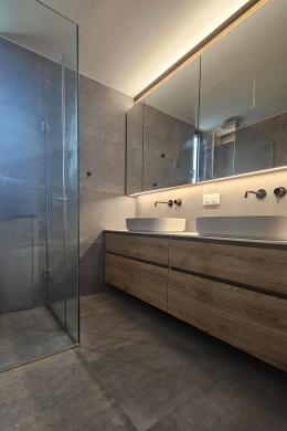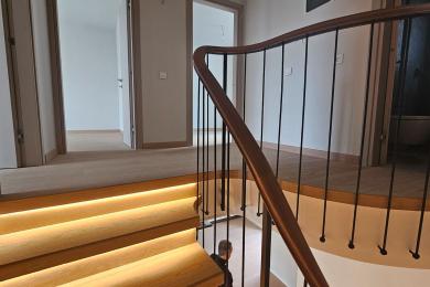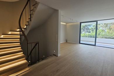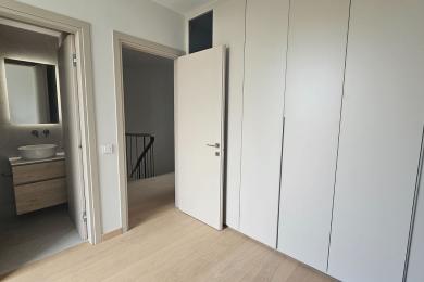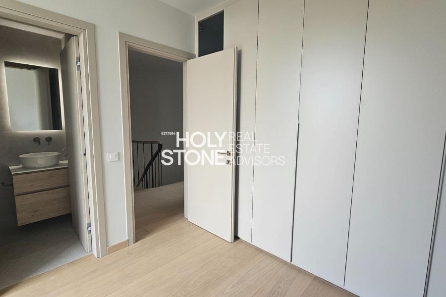 Ανεβαίνοντας στον δεύτερο όροφο, βρίσκουμε τρία ιδιαίτερα φωτεινά υπνοδωμάτια — ανάμεσά τους ένα master με en-suite μπάνιο — όλα με πρόσβαση σε μπαλκόνια. Ένα ακόμη καλαίσθητο μπάνιο εξυπηρετεί τα δύο επιπλέον δωμάτια, ολοκληρώνοντας την ιδιωτική ζώνη της κατοικίας.