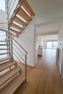 Η κατοικία αναπτύσσεται σε δύο επίπεδα, με 129 τ.μ. στον 6ο όροφο και 32 τ.μ. στον 7ο, τα οποία συνδέονται με εσωτερική σκάλα. Διαθέτει open-plan κουζίνα, που ενώνεται αρμονικά με τον χώρο του σαλονιού, τέσσερα ευρύχωρα υπνοδωμάτια, δύο λουτρά και ένα WC. Ο ανελκυστήρας φτάνει μέχρι τον 7ο όροφο, προσφέροντας εύκολη πρόσβαση και τη δυνατότητα τα δύο επίπεδα να λειτουργούν ανεξάρτητα, εάν το επιθυμείτε.