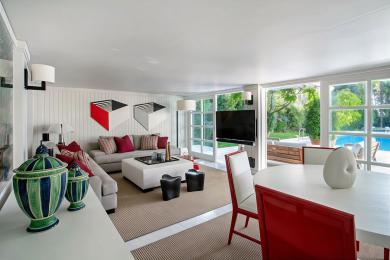 Με ατμόσφαιρα ιδιωτικού resort, το επίπεδο του κήπου περιλαμβάνει ευρύχωρους χώρους καθιστικού και τραπεζαρίας, δεύτερη μεγάλη κουζίνα και άμεση πρόσβαση στον καταπράσινο κήπο και την εξωτερική πισίνα. Σε γειτονικό κτίσμα φιλοξενούνται επιπλέον χώροι υποδοχής καθώς και υπνοδωμάτιο επισκεπτών με ιδιωτικό μπάνιο. Βοηθητικοί χώροι και αποθήκες διασφαλίζουν άριστη λειτουργικότητα χωρίς εκπτώσεις στην αισθητική.