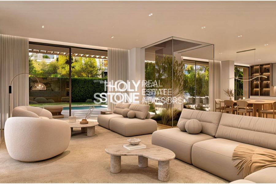 Στην καρδιά της Γλυφάδα, μιας από τις πιο κομψές και ζωντανές περιοχές της Αθηναϊκή Ριβιέρα, μόλις 800 μέτρα από τη θάλασσα, αυτή η εξαιρετική μεζονέτα συνολικής επιφάνειας 292 τ.μ. αναπτύσσεται σε ισόγειο και πρώτο όροφο και συνδυάζει σύγχρονη πολυτέλεια, εκλεπτυσμένη αισθητική και απόλυτη άνεση. Ο σχεδιασμός της δίνει έμφαση στο φυσικό φως και στην αρμονική σύνδεση εσωτερικών και εξωτερικών χώρων, δημιουργώντας ένα κομψό και ταυτόχρονα φιλόξενο περιβάλλον.