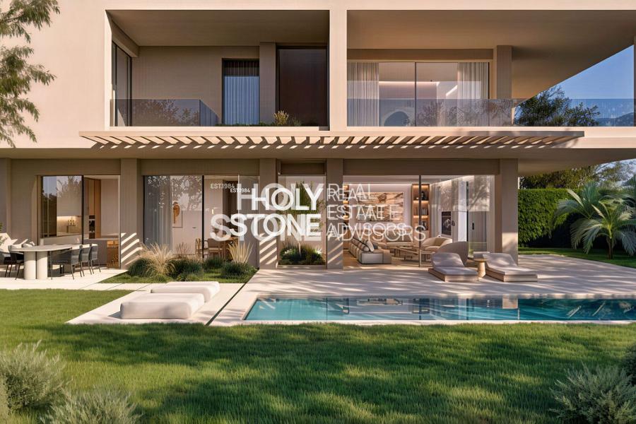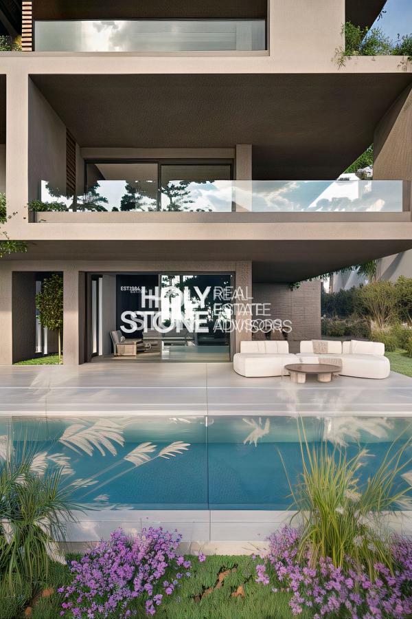 Μεγάλες ανοιγόμενες επιφάνειες οδηγούν απευθείας στον ιδιωτικό διαμορφωμένο κήπο 360 τ.μ., όπου μια εντυπωσιακή πισίνα 42 τ.μ. δημιουργεί ένα γαλήνιο περιβάλλον εξωτερικής διαβίωσης. Ο όροφος αυτός πλημμυρίζει από φυσικό φως και προσφέρει μια αρμονική σύνδεση με το πράσινο, προσφέροντας έναν τρόπο ζωής που συνδυάζει την άνεση του εσωτερικού χώρου με την απόλαυση του εξωτερικού.