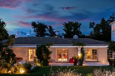 Με ατμόσφαιρα ιδιωτικού resort, το επίπεδο του κήπου περιλαμβάνει ευρύχωρους χώρους καθιστικού και τραπεζαρίας, δεύτερη μεγάλη κουζίνα και άμεση πρόσβαση στον καταπράσινο κήπο και την εξωτερική πισίνα. Σε γειτονικό κτίσμα φιλοξενούνται επιπλέον χώροι υποδοχής καθώς και υπνοδωμάτιο επισκεπτών με ιδιωτικό μπάνιο. Βοηθητικοί χώροι και αποθήκες διασφαλίζουν άριστη λειτουργικότητα χωρίς εκπτώσεις στην αισθητική.