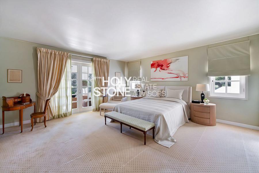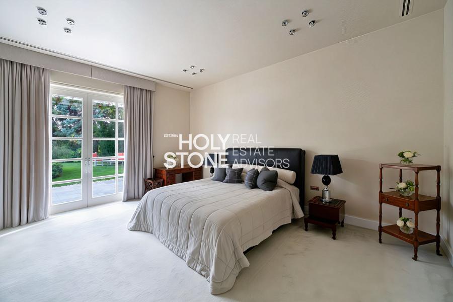 Στο ίδιο επίπεδο φιλοξενείται μία πολυτελής master σουίτα με τζάκι και walk-in ντουλάπα. Τέσσερα επιπλέον υπνοδωμάτια με ιδιωτικά μπάνια εξασφαλίζουν απόλυτη άνεση, ενώ δύο ακόμη υπνοδωμάτια μοιράζονται ένα καλαίσθητο μπάνιο, καλύπτοντας ιδανικά τις ανάγκες οικογένειας και φιλοξενούμενων.