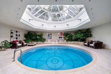 Το κατώτερο επίπεδο είναι αφιερωμένο στην ψυχαγωγία και την ευεξία, διαθέτοντας κομψό bar και lounge με θέα στην εσωτερική πισίνα, η οποία φωτίζεται φυσικά μέσω φεγγιτών. Η εμπειρία ολοκληρώνεται με σάουνα και σύγχρονο γυμναστήριο.